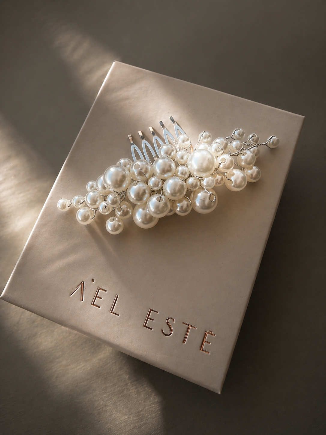 Gold Sofia Pearl Bridal Headband + Mia Pearl Headband