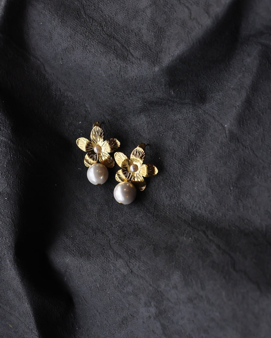 Bridal Crystal Pearl Bridal Drop Earrings - Gold