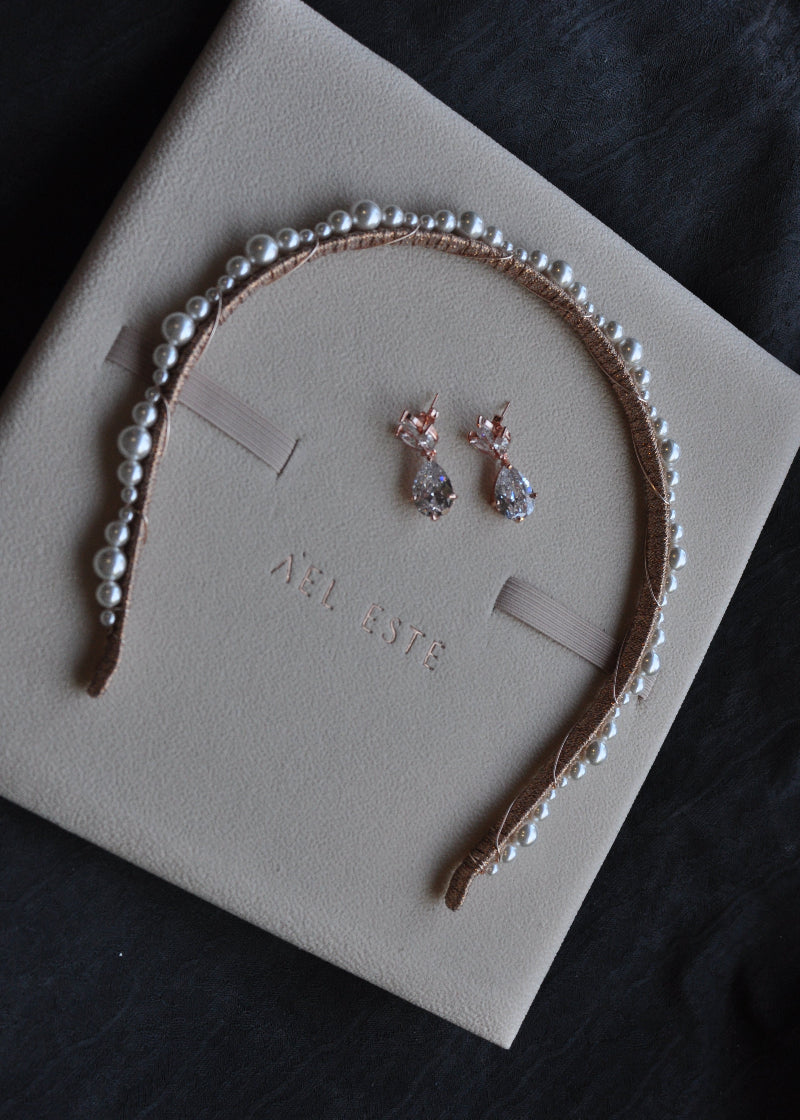 Powder Blue Aria + Aubrey Gold Headband + Gold Noa Earring Set