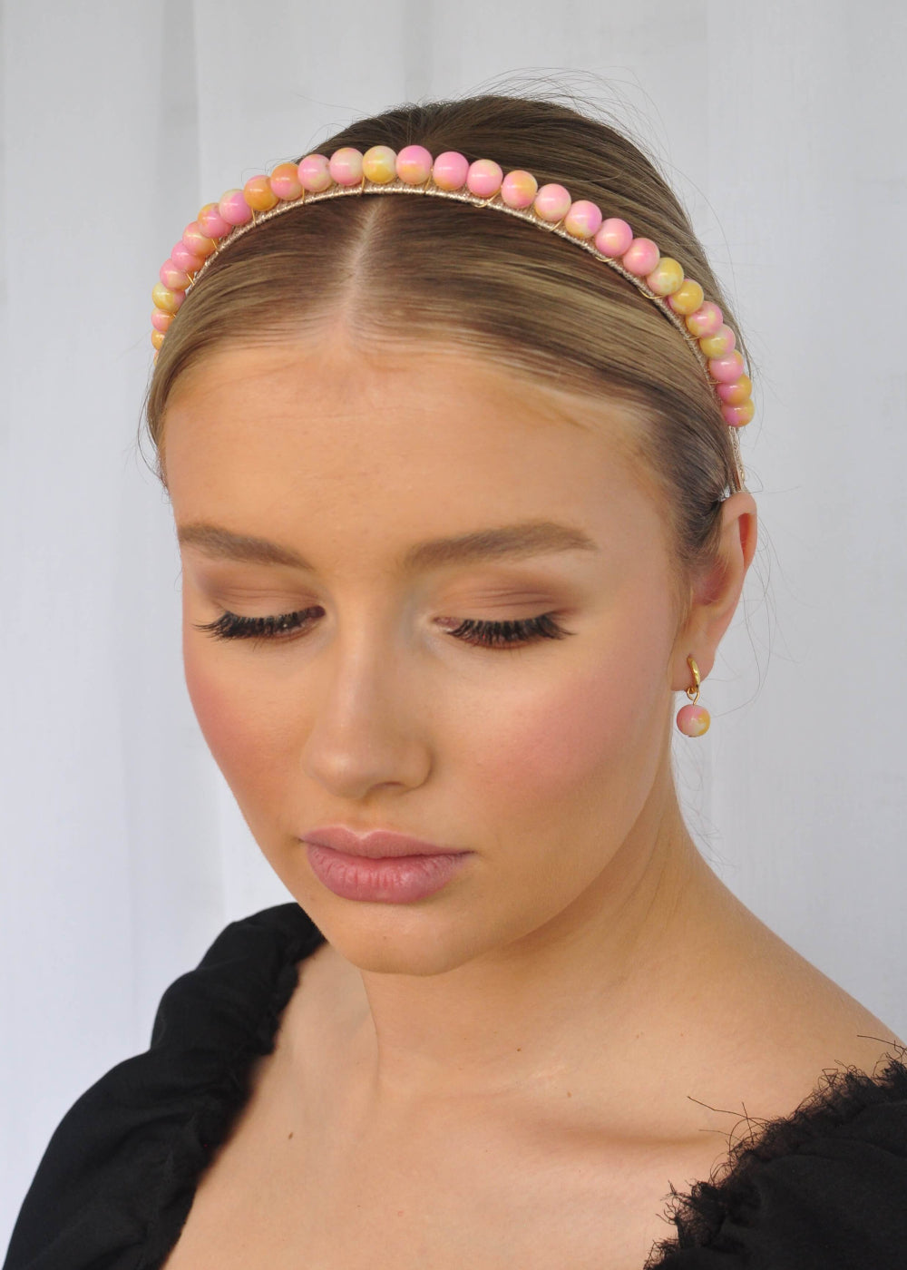 Pink & Yellow Hettie + Silver Lucy + Lemon Kinsley Headbands + Small Zara Earring Set