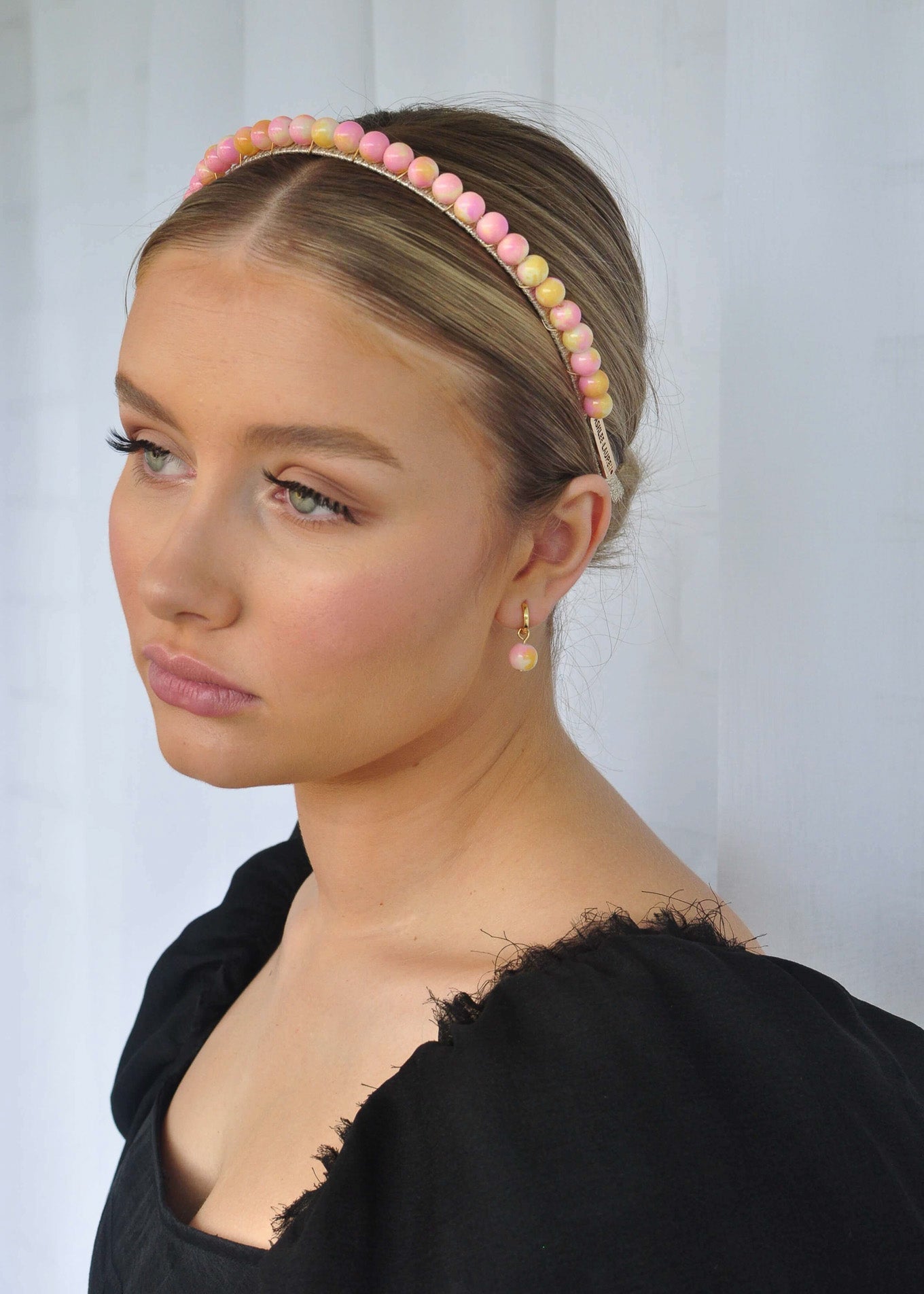With its lightweight, comfortable fit, the Hettie Marbled Glass Beaded Headband ensures effortless elegance all day long—a must-have addition to your accessory collection, with earrings to match.