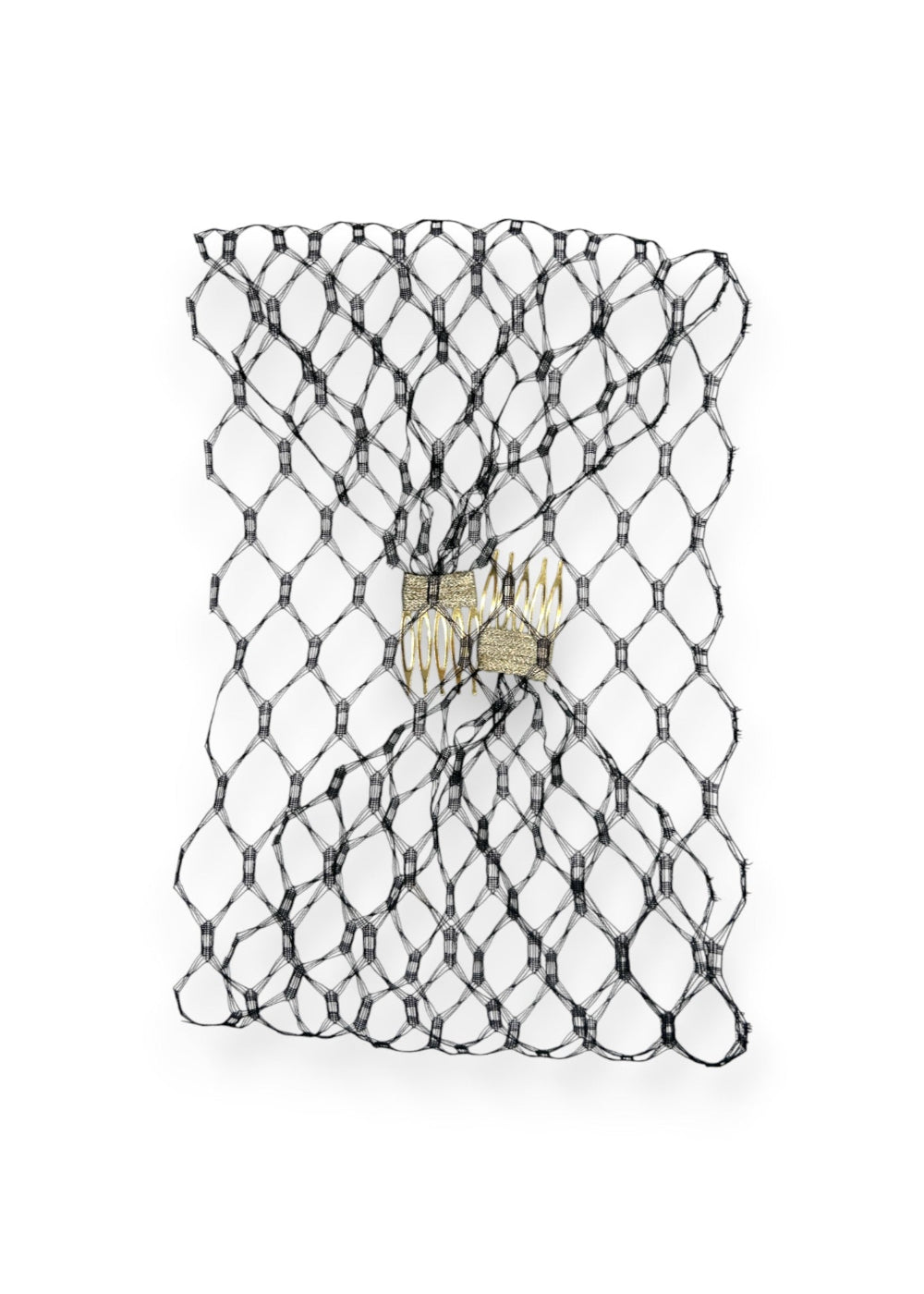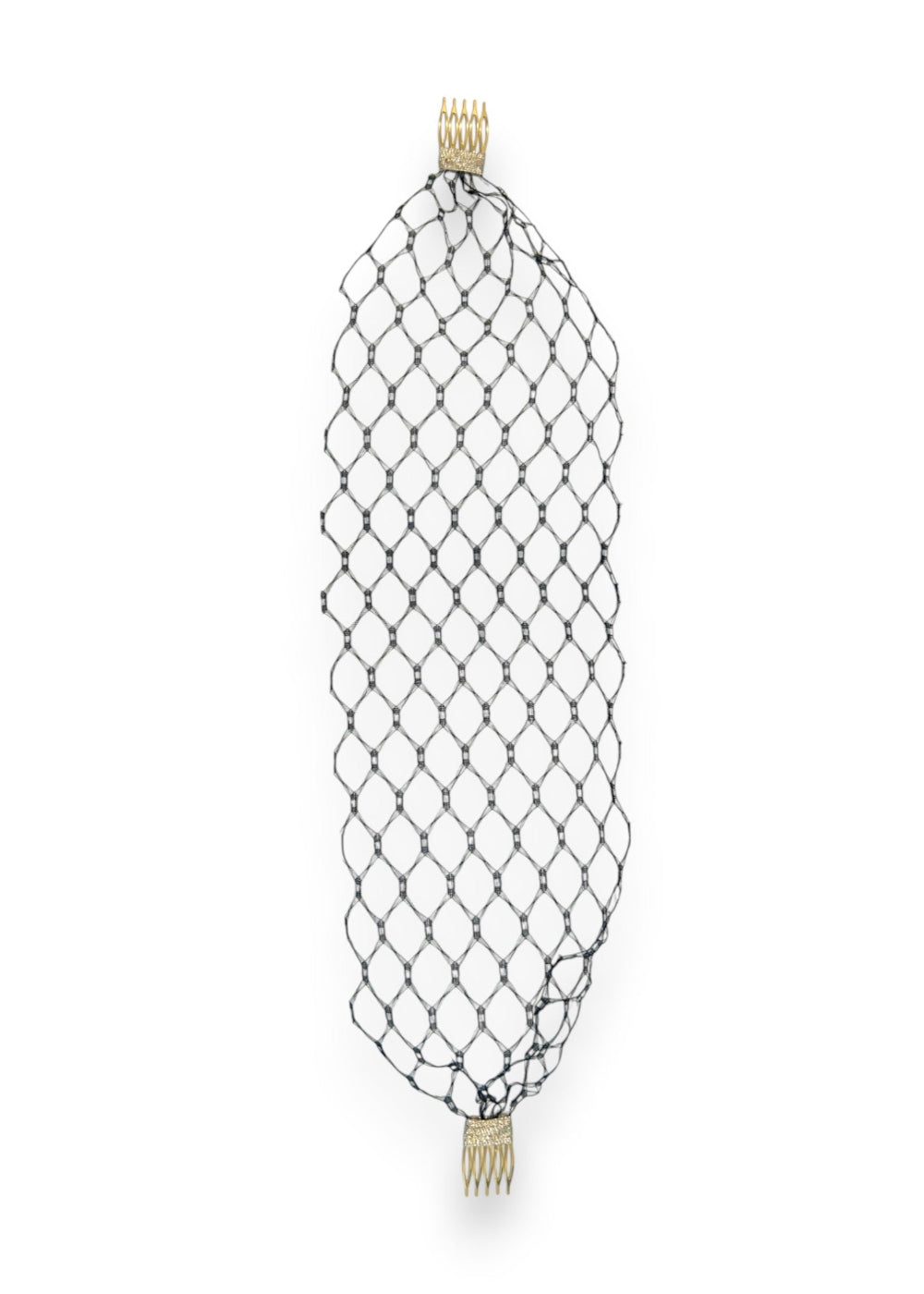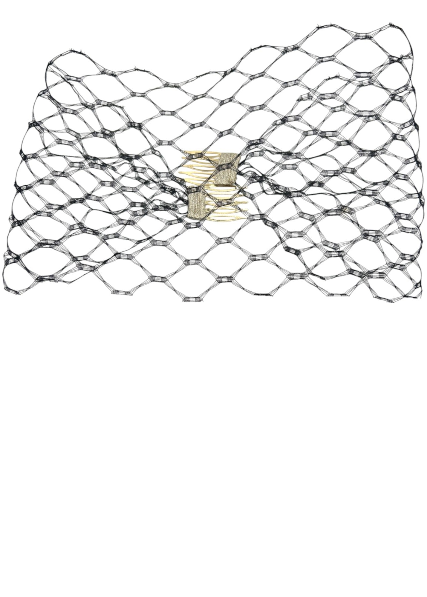 Measuring 50cm in length by 16cm in width, it’s secured with gold-toned combs at each end, making it easy to style in a variety of ways. Sweep it across the eyes and nose for a classic birdcage look, or position it higher for a softer, retro-inspired style.