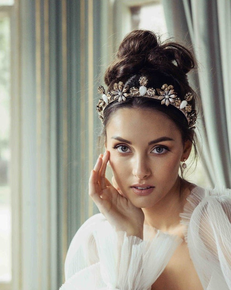 - Vintage Plated Headband: Crafted with a vintage gold band that exudes classic sophistication.